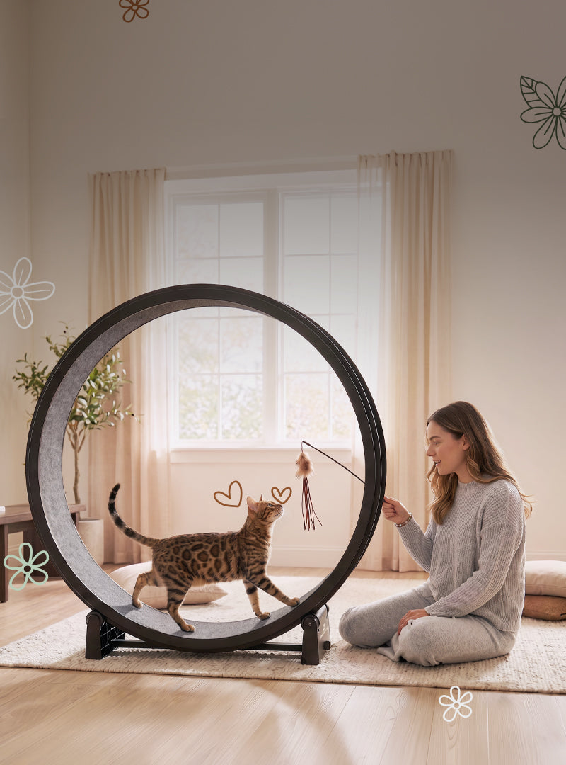 An enticing fun to help get your energetic cat running on our exercise wheel.